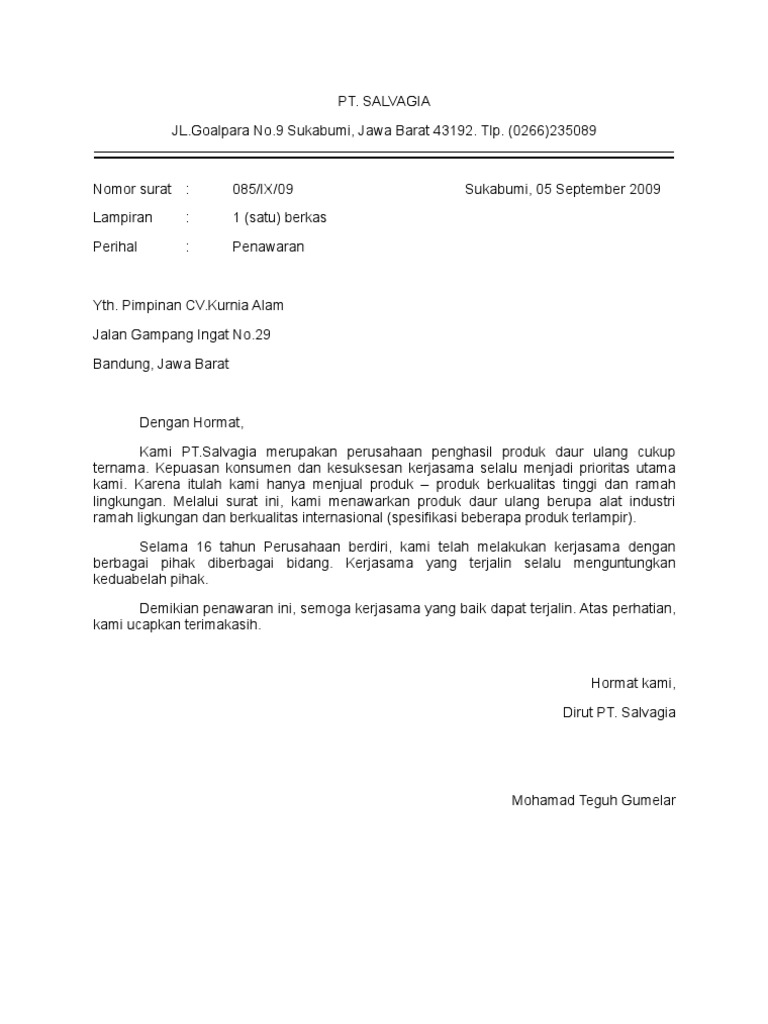 Segar alam abadi electrosolution ruko edelwis permai blok ab3 no. Tak memandang usia, banyak dari mereka yang masih berusia remaja bahkan yang sudah tua juga menggeluti profesi. Contoh surat penawaran barang elektronik. Jenis surat ini tergolong masih merupakan salah satu jenis surat. Surat niaga ialah suatu surat yang dibuat secara resmi yang berkaitan dengan suatu bisnis, jual beli, penawaran dan sebagainya.