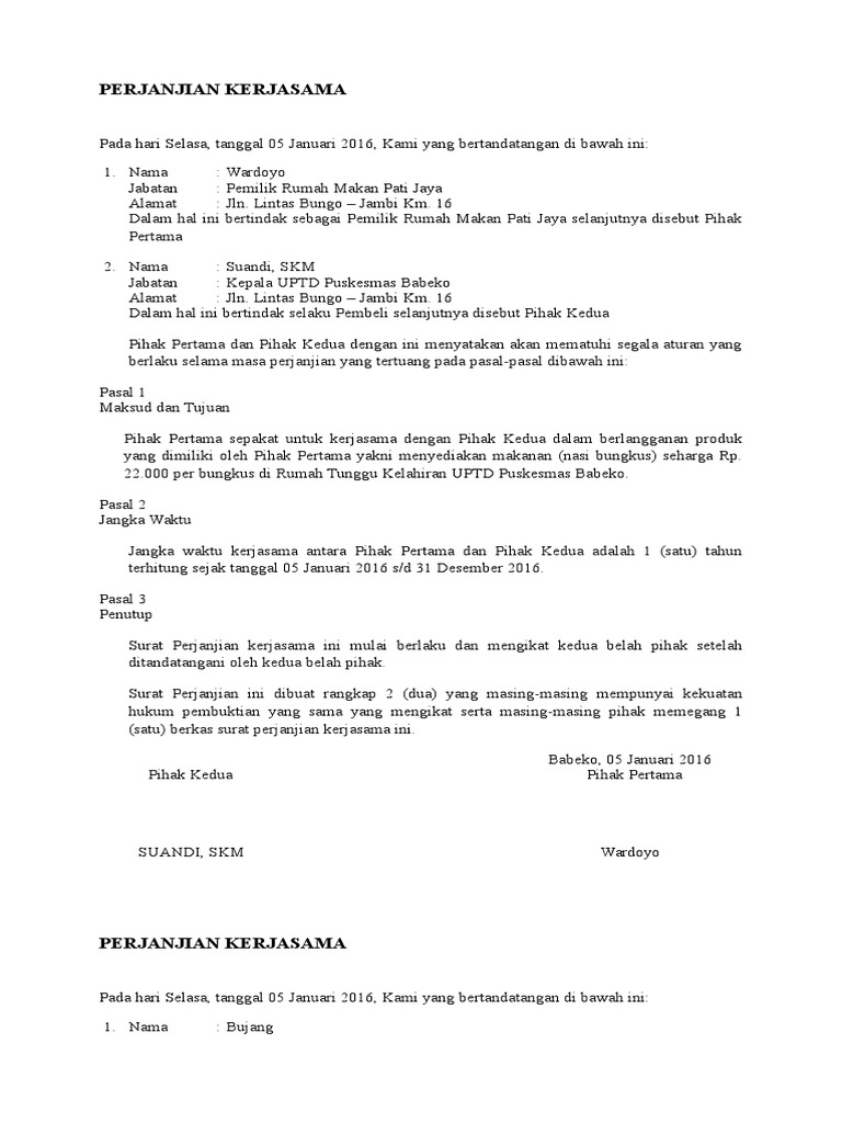 Surat perjanjian sewa menyewa ini biasanya berlaku untuk menyewa rumah atau ruko. Pengertian dan penggunaan perjanjian kerjasama. 6th maret 2021 11 min read. Surat perjanjian jual beli rumah. Jangka waktu kerjasama yang tersebut pada pasal 1 adalah 5 tahun terhitung sejak perjanjian ini disepakati dan ditandatangani.