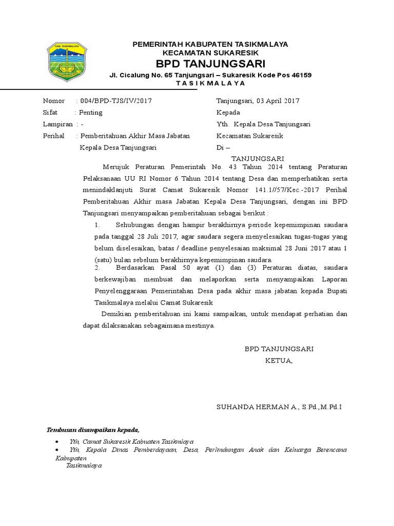 Contoh Surat Resmi Bpd Kepada Kepala Desa / Contoh Surat Undangan Bpd Untuk Kepala Desa - Berbagi ... / Tentang badan permusyawaratan desa bpd di desakecamatan contoh surat contoh undangan kepada kepala desa contoh isi undangan.. Kop surat atau kepala surat merupakan format baku yang digunakan sebagai penanda otentik surat dari suatu instansi atau perseorangan. Contoh surat pengantar kepala desa cucupan. Download contoh surat pengunduruan diri sebagai anggota bpd ke kepala desa format doc simpel dan sederhana. Setiap proposal yang akan dikirimkan atau. Diatas adalah contoh surat pengunduran diri untuk kepala desa, kaur dan aparat.