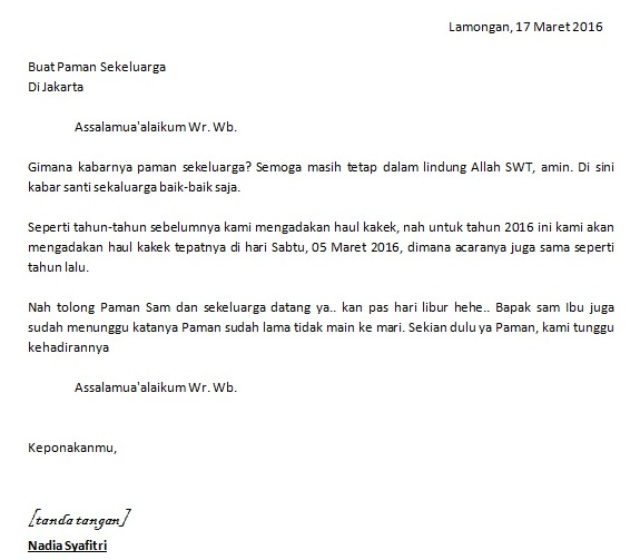 Saya memiliki kemampuan dalam menulis bahasa inggris karena saya mahasiswa dari program studi bahasa inggris di universitas lampung. Ini bukanlah contoh surat pembaca dalam bahasa inggris dan tentu berbeda dengan contoh surat pendek bahasa indonesia dalam hal frase dan nah demikian surat ini kami sampaikan english, sebuah surat pribadi, surat tidak resmi, surat non bisnis, atau surat non formal sebagi bahan. Selain surat resmi, ada juga surat resmi dalam bentuk undangan untuk menghadiri seminar. Namun untuk yang belum pernah membuatnya, contoh surat undangan dalam bahasa inggris berbagai kegiatan dibutuhkan sebagai panduan pembuatan. Atau masih kesulitan nulisnya gimana?